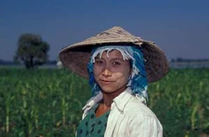 Few of the single-lane roads have been repaired since the British left in 1948, and most of the buildings and their plumbing are rakish remnants of the colonial era. The pull-chain toilet in a creaky hotel I stayed at in the eastern mountain region had the words "Clark & Creig, Ltd., Rangoon 1936" rusting on the reservoir. At another five-dollar-a-night lodging, I was awakened in the morning by a finger-size wall lizard crawling across my face.