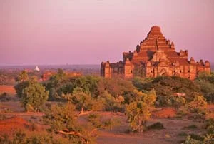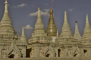 Like other royal cities of Myanmar, the kings' palaces at Pagan were constructed of wood. So all that is left of this once busy city are the hundreds of sun-baked pagodas virtually covering the land to the Ayeyarwady.